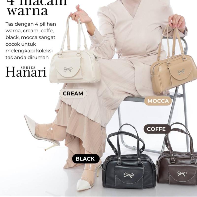 HANARI BAG FREE SLING BAG Tas elegan dengan sentuhan aksesoris pita gold yang manis & classy ? Cocok untuk daily look maupun acara semi formal. ? Spesifikasi Produk : • Nama Produk : Hanari Bag • Ukuran : 25 x 16 cm • Bahan : Kulit PU Premium • Tali : – Tali jinjing – Tali panjang ±105 cm (bisa lepas pasang) • Aksesoris : Gold hardware bentuk pita • Detail : Pocket di bagian depan tas ? Pilihan Warna : Black, Coffee, Cream, Mocca